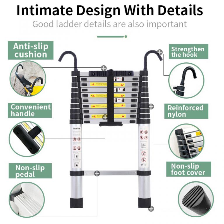 Whether you only need a shorter ladder to reach a high shelf or need to fully extend it to 6.2 meters for outdoor work, such as cleaning drainage ditches, this telescopic ladder can meet all the requirements. Its scaling mechanism is very smooth, and it is easy to adjust it as high as you want. After use, it can be folded into a small size for convenient storage, and can be placed in a closet, garage, or even the trunk of a car without any problem.