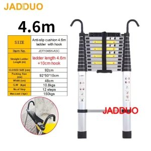 | Anti-slip cushion 4.6m ladder with hook | JDT1046H-ASC | ladder length4.6m+10 cm hook | 92cm | 92*50*10cm | 48cm | 10.8kgs | 12 steps | 150kgs | 596 | 1447 |