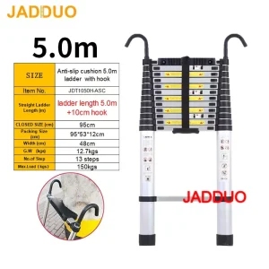 | Anti-slip cushion 5.0m ladder with hook | JDT1050H-ASC | ladder length5.0m+10 cm hook | 95cm | 95*53*12cm | 48cm | 12.7kgs | 13 steps | 150kgs | 583 | 1417 |