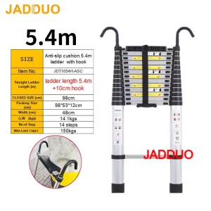 | Anti-slip cushion 5.4m ladder with hook | JDT1054H-ASC | ladder length5.4m+10 cm hook | 98cm | 98*53*12cm | 48cm | 14.1kgs | 14 steps | 150kgs | 571 | 1388 |