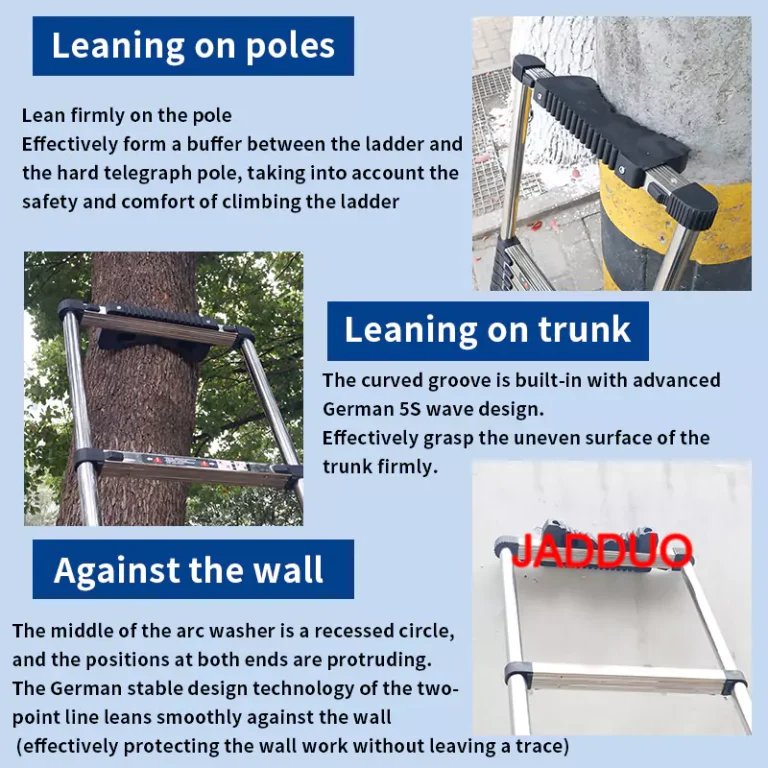 Safety is always a top concern when using a ladder. That’s why our ladder is designed with multiple safety features. The anti – slip pedals provide a firm grip, preventing accidental slips even if your shoes are wet or dirty. The non – slip foot covers ensure that the ladder stays firmly in place on various surfaces, giving you a stable base to work from. And the anti – slip cushion? It’s a game – changer. When leaning against poles, tree trunks, or walls, it enhances stability, reducing the risk of the ladder shifting or falling. Plus, with the EN131 certification, you can have complete peace of mind knowing that the ladder meets strict European safety and performance standards.