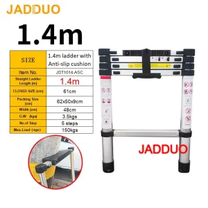 | 1.4m ladder with Anti-slip cushion | JDT1014-ASC | 1.4m | 61cm | 62x50x9cm | 48cm | 3.5kgs | 5 steps | 150kgs | 1400 | 3400 |