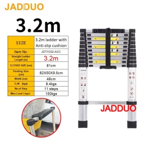 | 3.2m ladder with Anti-slip cushion | JDT1032-ASC | 3.2m | 81cm | 82X50X9.5cm | 48cm | 8.4kgs | 11 steps | 150kgs | 737 | 1789 |