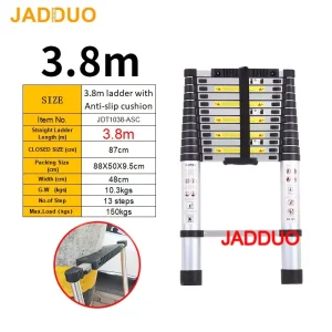 | 3.8m ladder with Anti-slip cushion | JDT1038-ASC | 3.8m | 87cm | 88X50X9.5cm | 48cm | 10.3kgs | 13 steps | 150kgs | 636 | 1545 |