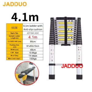 | 4.1m ladder with Anti-slip cushion | JDT1041-ASC | 4.1m | 90cm | 91x50x10cm | 48cm | 10.8kgs | 14 steps | 150kgs | 622 | 1511 |