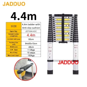 | 4.4m ladder with Anti-slip cushion | JDT1044-ASC | 4.4m | 93cm | 94x50x10cm | 48cm | 11.8kgs | 15 steps | 150kgs | 609 | 1478 |