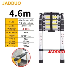 | 4.6m ladder with Anti-slip cushion | JDT1046-ASC | 4.6m | 92cm | 92*50*10cm | 48cm | 10.2kgs | 12 steps | 150kgs | 596 | 1447 |