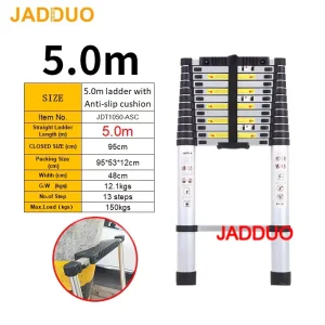 | 5.0m ladder with Anti-slip cushion | JDT1050-ASC | 5.0m | 95cm | 95*53*12cm | 48cm | 12.1kgs | 13 steps | 150kgs | 583 | 1417 |