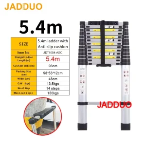 | 5.4m ladder with Anti-slip cushion | JDT1054-ASC | 5.4m | 98cm | 98*53*12cm | 48cm | 13.5kgs | 14 steps | 150kgs | 571 | 1388 |