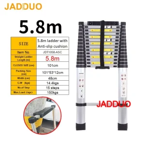 | 5.8m ladder with Anti-slip cushion | JDT1058-ASC | 5.8m | 101cm | 101*53*12cm | 48cm | 14.4kgs | 15 steps | 150kgs | 560 | 1360 |