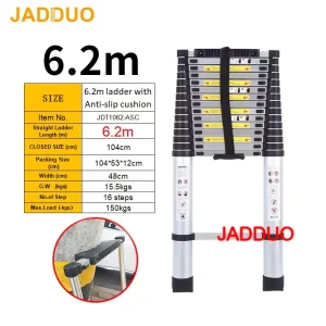 | 6.2m ladder with Anti-slip cushion | JDT1062-ASC | 6.2m | 104cm | 104*53*12cm | 48cm | 15.5kgs | 16 steps | 150kgs | 538 | 1308 |
