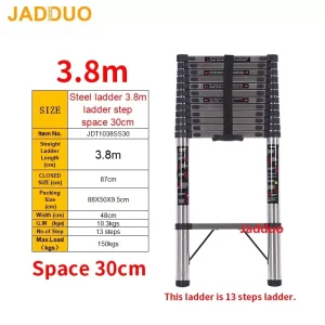 | Steel ladder 3.8m ladder step space 30cm | JDT1038SS30 | 3.8m | 87cm | 88X50X9.5cm | 48cm | 10.3kgs | 13 steps | 150kgs | 636 | 1545 |